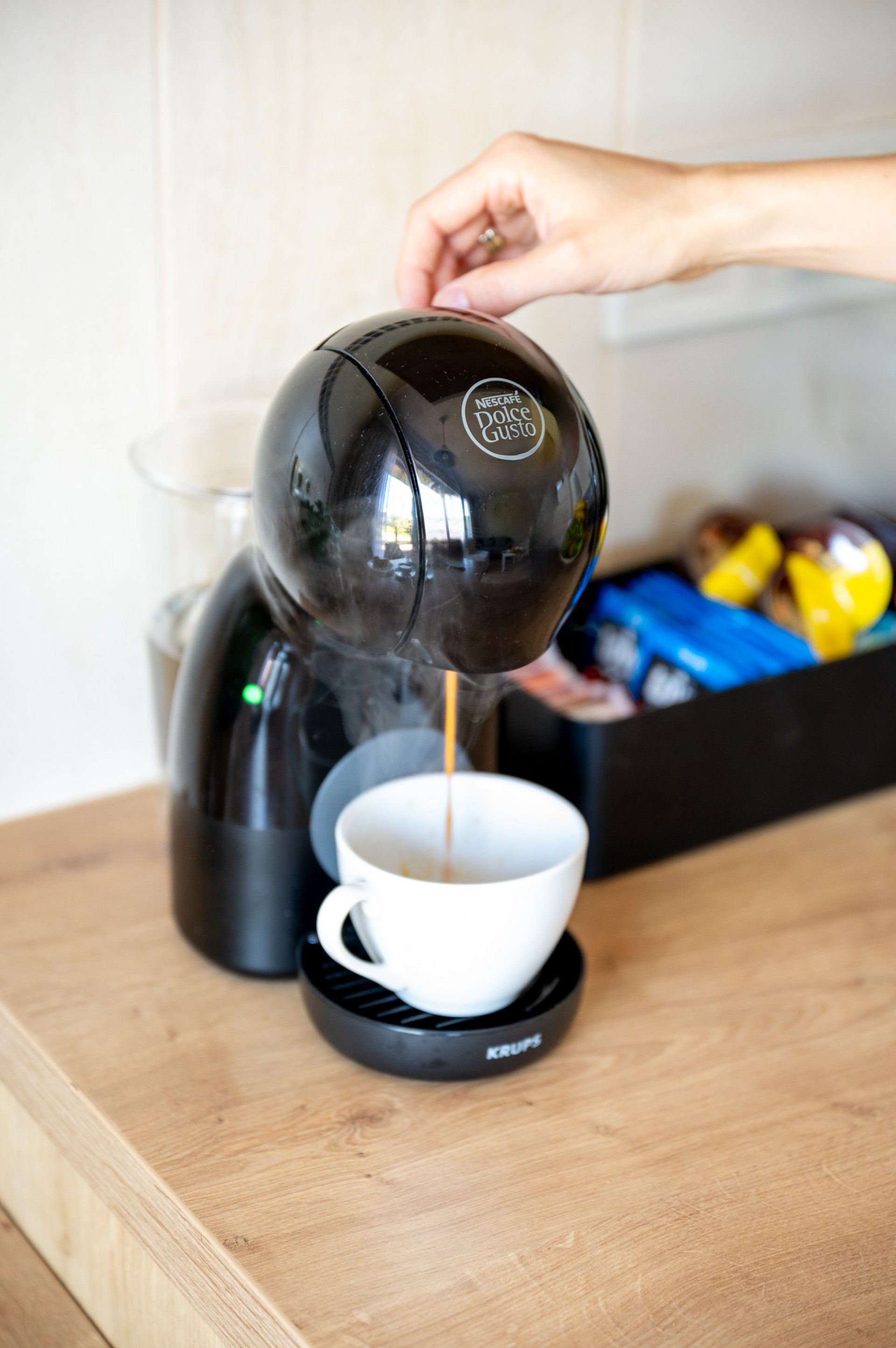 - aneks kuchenny (lodówka, zlewozmywak, płyta ceramiczna, okap, czajnik, komplet garnków, naczyń i sztućców oraz stół z krzesłami i taboretem)