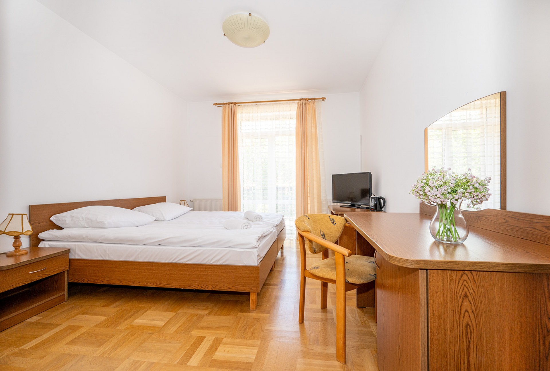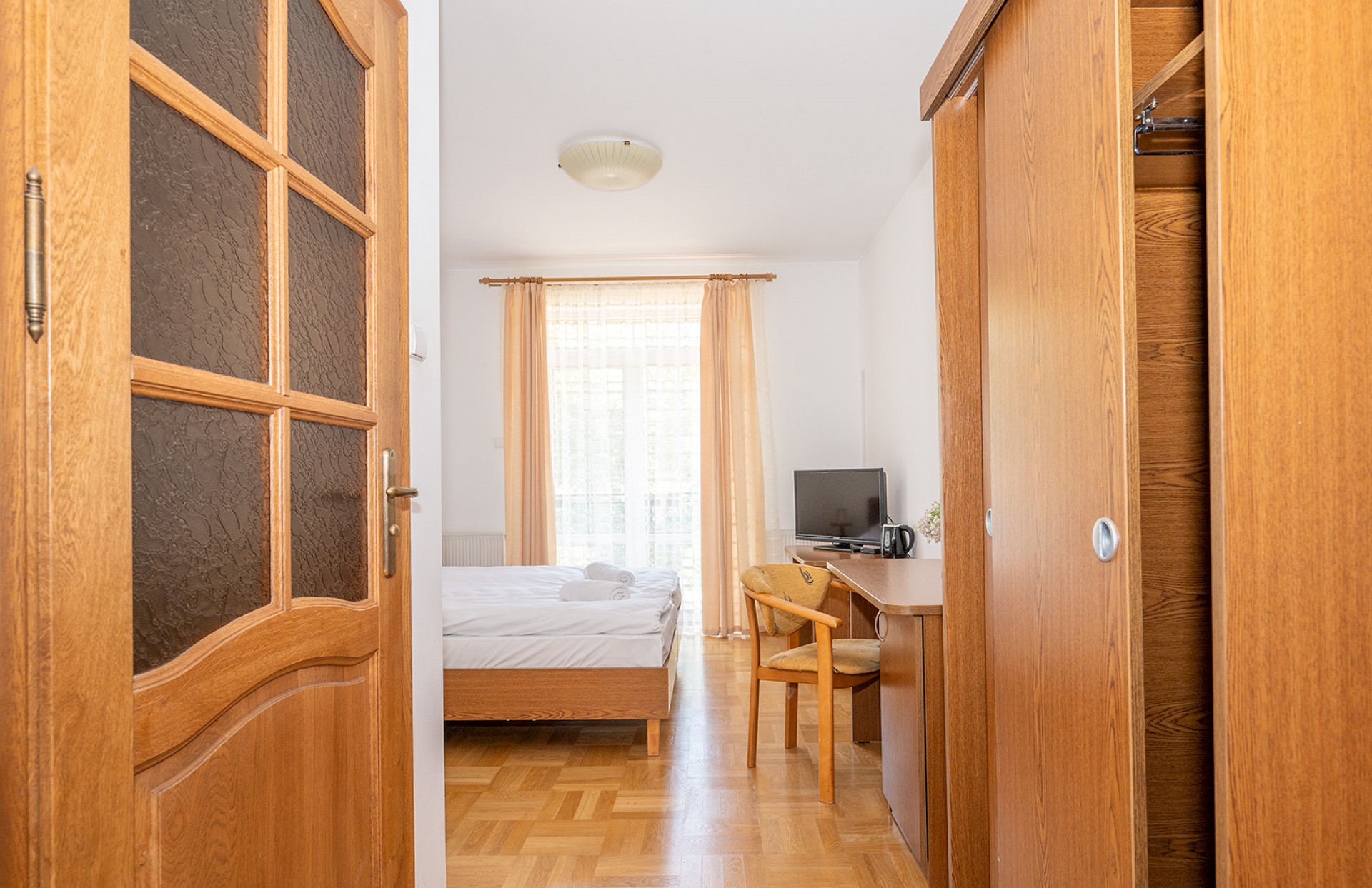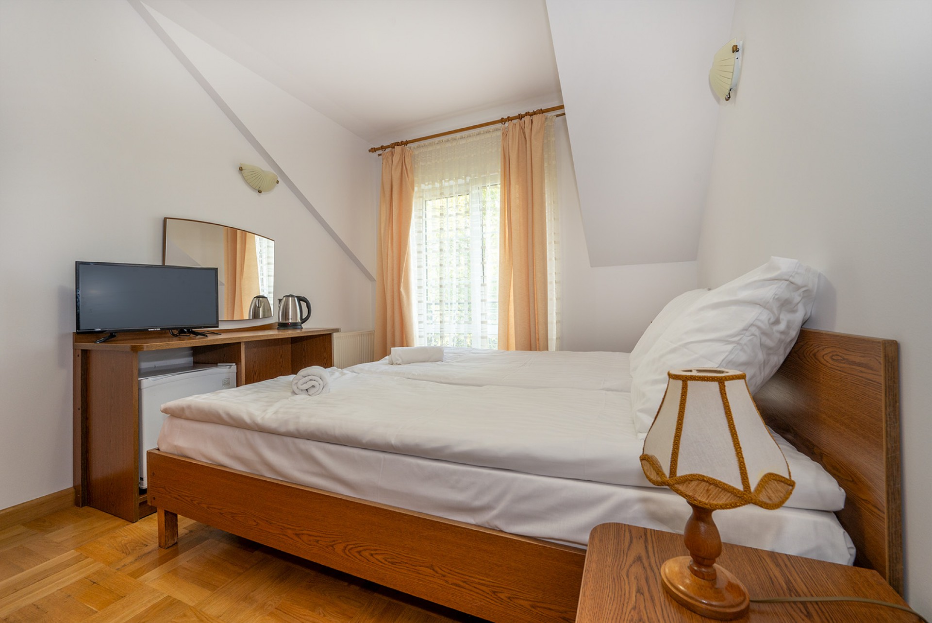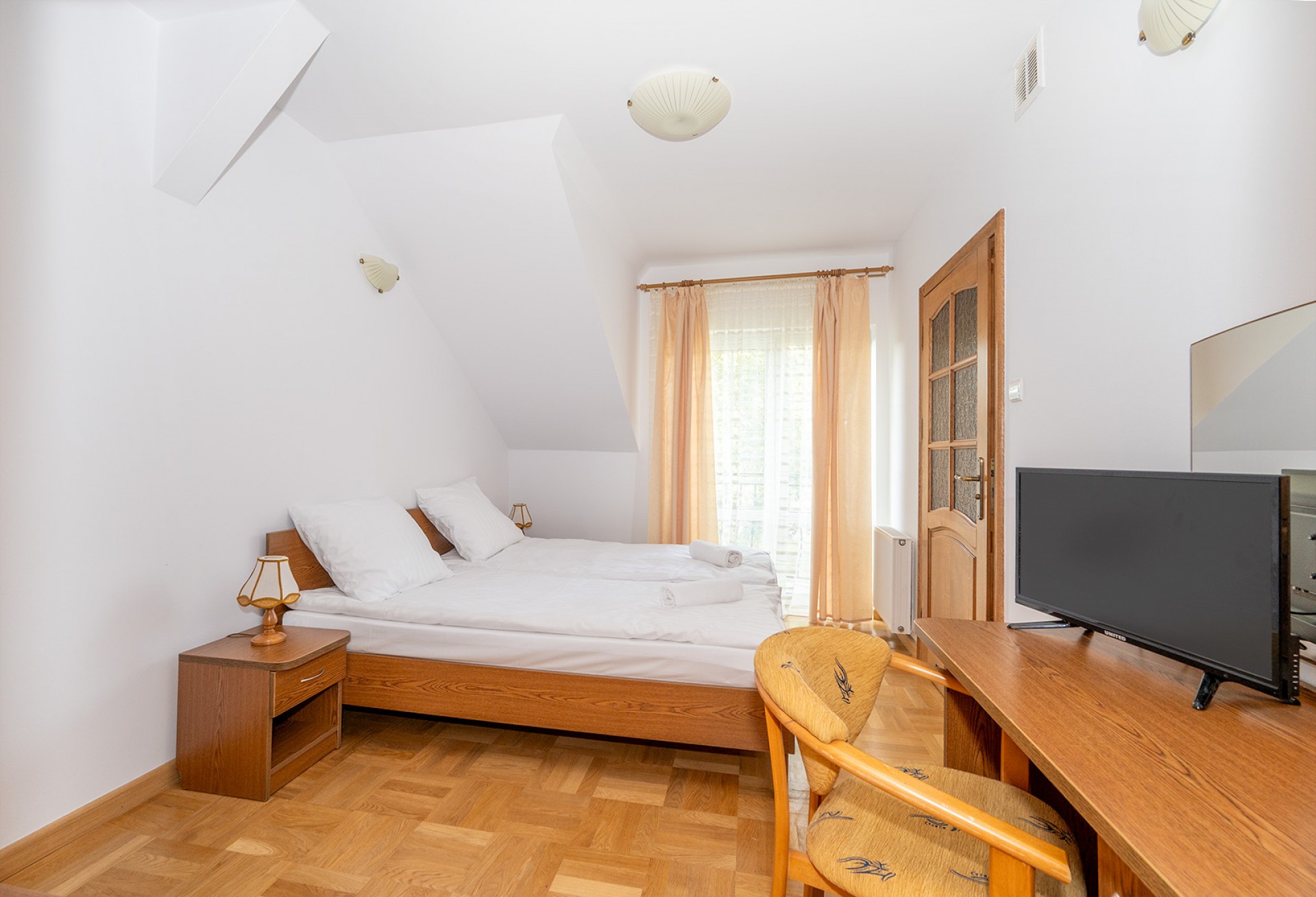 W naszej ofercie znajdą Państwo 13 pokoi dwuosobowych z możliwością dostawki oraz pokoje trzyosobowe. Każdy z pokoi posiada w swoim standardowym wyposażeniu telewizor, lodówkę, czajnik oraz łazienkę. Do dyspozycji jest również aneks wypoczynkowy, który znajduje się w holu. Jeden z pokoi przystosowany jest dla pobytu osób niepełnosprawnych.