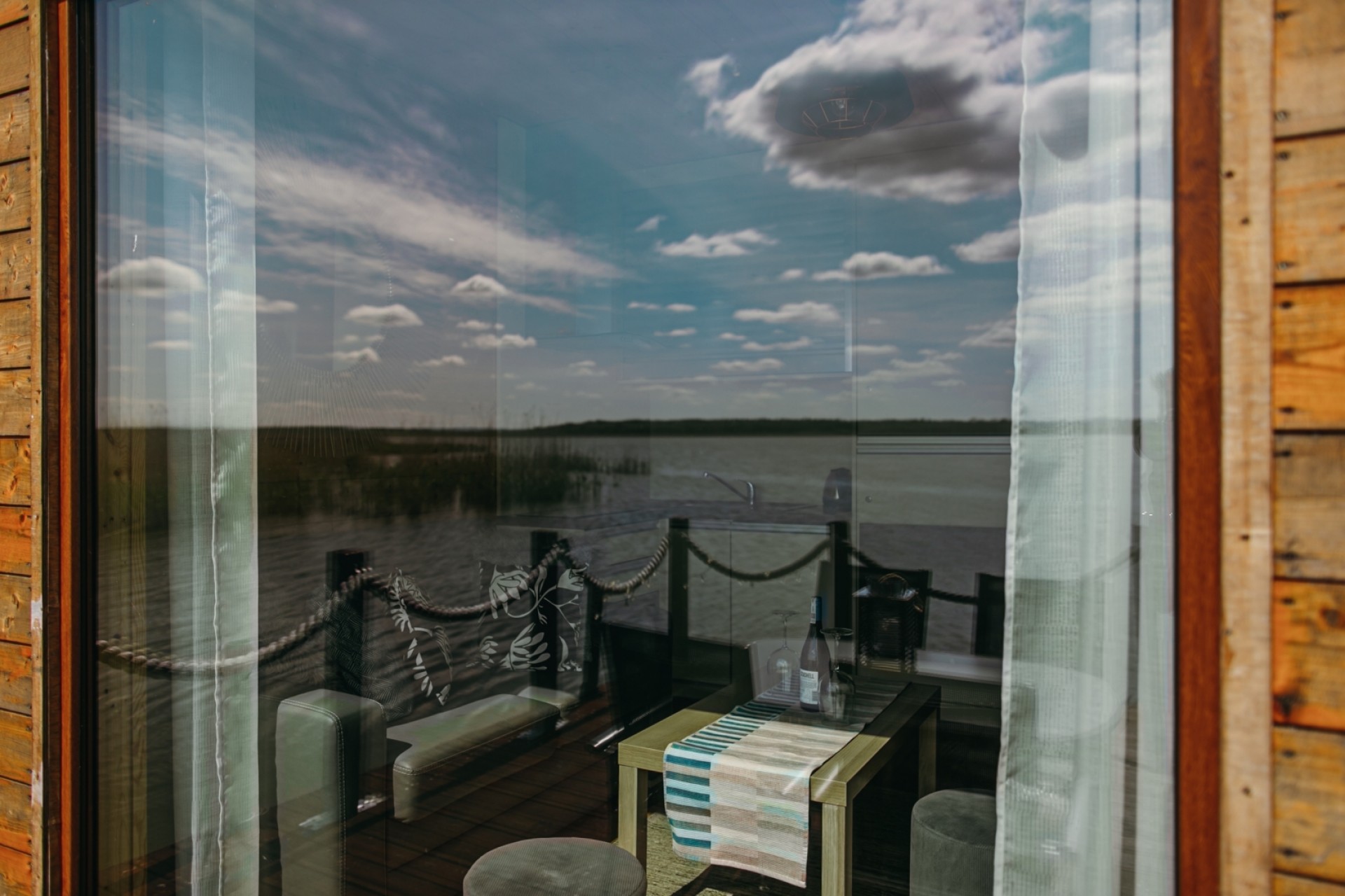 NATURA - domy na wodzie i pole campingowe to wyjątkowe miejsce położone na wąskiej porośniętej lasem sosnowym mierzei dzielącej Jezioro Bukowo od Morza Bałtyckiego.