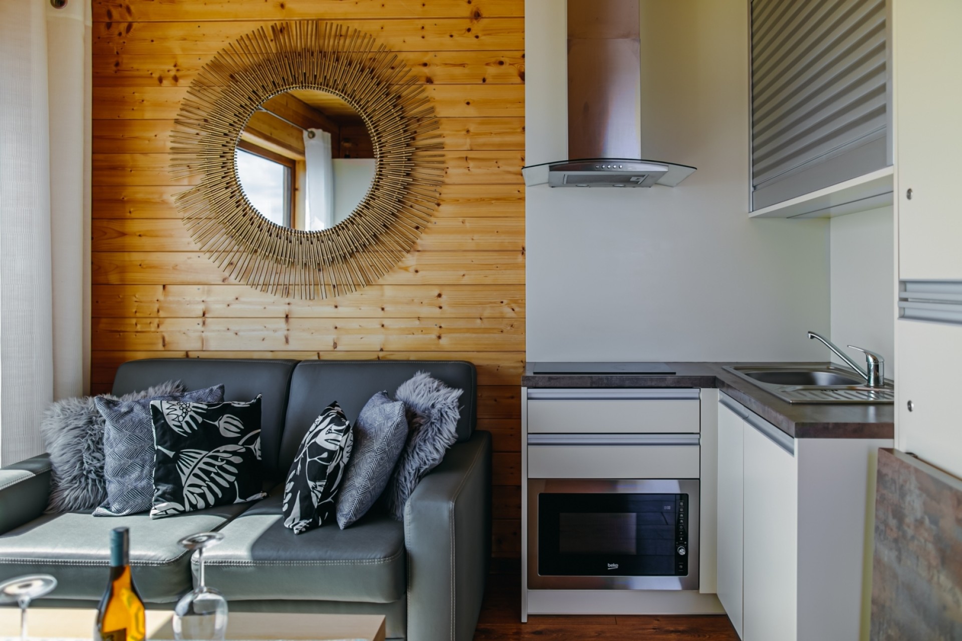 - Domek jest całoroczny, wyposażony w klimatyzację oraz ogrzewanie.