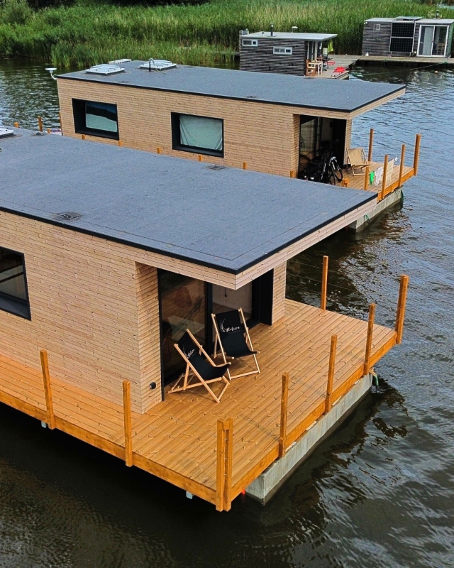 CAŁOROCZNE LUKSUSOWO WYPOSAŻONE DOMKI NA WODZIE /jezioro Bukowo/.